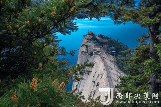 東峰海拔2096.2米,是華山主峰之一,因位置居東得名。峰頂有一平臺,居高臨險,視野開闊,是著名的觀日出的地方,東峰也因之被稱為朝陽峰。東峰頂生滿巨檜喬松,濃蔭蔽日,環(huán)境非常清幽。游人自松林間穿行,上有團才綠蔭,如傘如蓋耳畔陣陣松濤,如吟如詠,頓覺心曠神怡,超然物外。