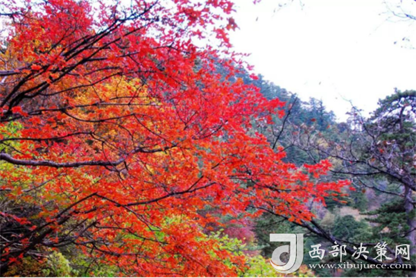 深秋,被收獲過(guò)的大地,裸露著年復(fù)一年的坦誠(chéng)。華山的紅葉是一種渾然天成、不加修飾的美。云淡風(fēng)輕、紅葉晚霞,郎才女貌,天然絕配。華山紅葉依托青山白云,無(wú)疑中便蘊(yùn)含大自然神秘的面紗,也吸引名人志士的不懈探索與尋覓,天然造成鐘靈毓秀,是珍稀植物的棲息隱居良地。