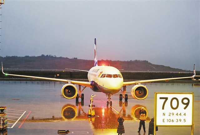 2018年12月30日凌晨,利用中新(重慶)互聯(lián)互通項目和自由貿(mào)易疊加優(yōu)勢,重慶航空引進的第五架空客A320neo飛機抵達江北國際機場。 (重慶航空供圖)