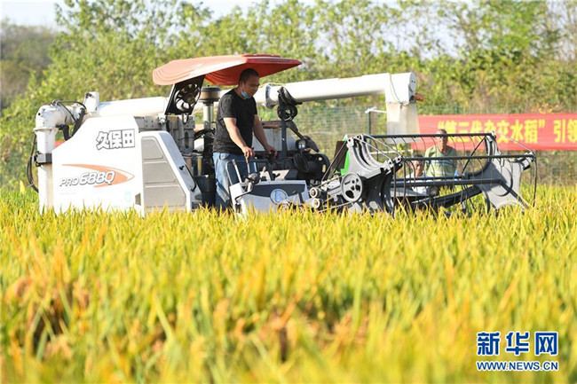 由“雜交水稻之父”袁隆平團(tuán)隊(duì)研發(fā)的第三代雜交水稻10月21日至22日首次公開測產(chǎn)。經(jīng)測產(chǎn)專家組評定,最終畝產(chǎn)為1046.3公斤。