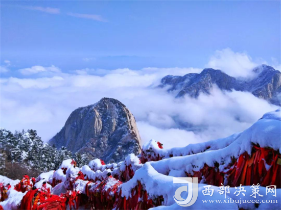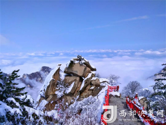 冬天華山的雪景不僅是銀白的世界,而是猶如千姿百態(tài)的雪雕。有“林海玉樹”、“雪堆玉石”、“云中雪龍”、“巖崖雪屋”、“梨花飛揚(yáng)”、“天女散花”、“紅帶玉墜”等各具形態(tài)的奇特景觀。矗立北峰,望山外三峰及四周,那華山的雪,層層疊疊,覆蓋著起伏的山巒,天地間一片蒼茫。又或遇大雪漫天飛舞,鋪天蓋地,天地間一片潔白。