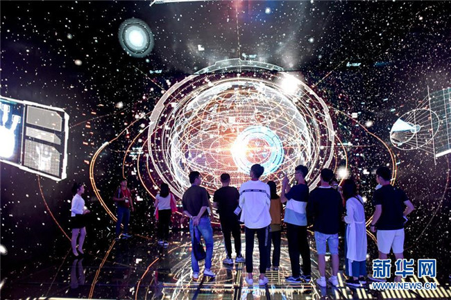 大學(xué)生在安徽淮南市大數(shù)據(jù)展示中心參觀,了解大數(shù)據(jù)產(chǎn)業(yè)在智慧城市建設(shè)中的作用(7月9日攝)。 新華社發(fā)(陳彬攝)