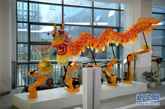 這是10月21日在蕪湖機(jī)器人產(chǎn)業(yè)園拍攝的舞龍機(jī)器人。  新華社發(fā)(黃博涵攝)