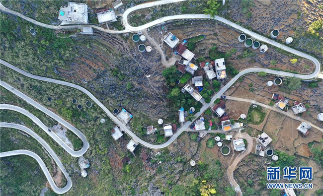 廣西大化瑤族自治縣七百弄鄉(xiāng)弄騰村群眾的家庭水柜分布在房前屋后(11月9日無人機(jī)拍攝)。 新華社記者 黃孝邦 攝