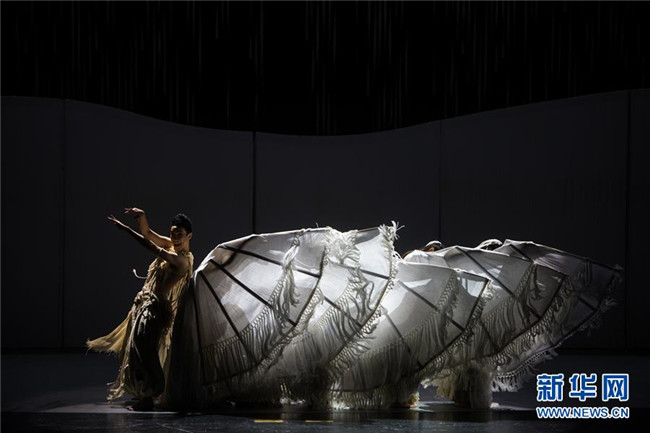 演員在音樂舞劇《云繡彝裳》第五章節(jié)“絲路云裳”中表演(11月15日攝)。新華社記者胡超攝