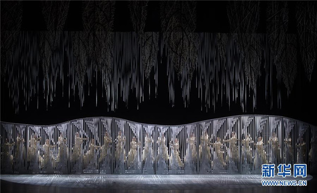 演員在音樂舞劇《云繡彝裳》第二章節(jié)“草木經(jīng)緯”中表演(11月15日攝)。新華社記者胡超攝