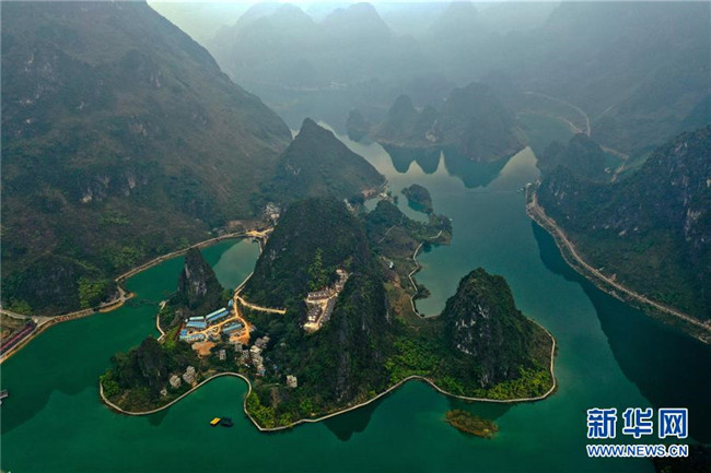 這是廣西凌云縣浩坤湖景區(qū)風(fēng)光(11月24日無人機拍攝)。新華社記者張愛林