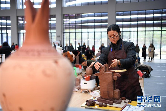 12月1日,參賽選手在陶藝技能大賽現(xiàn)場(chǎng)制陶。新華社記者唐奕攝