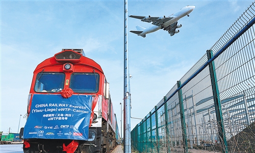 10月25日,中歐班列(義烏—列日)“世界電子貿(mào)易平臺(eWTP)菜鳥號”首趟列車抵達(dá)比利時(shí)列日物流多式聯(lián)運(yùn)貨運(yùn)場站。這是首個(gè)貫通中國長三角區(qū)域、中亞和歐洲并服務(wù)于跨境電子商務(wù)的專列。 新華社記者 潘革平攝