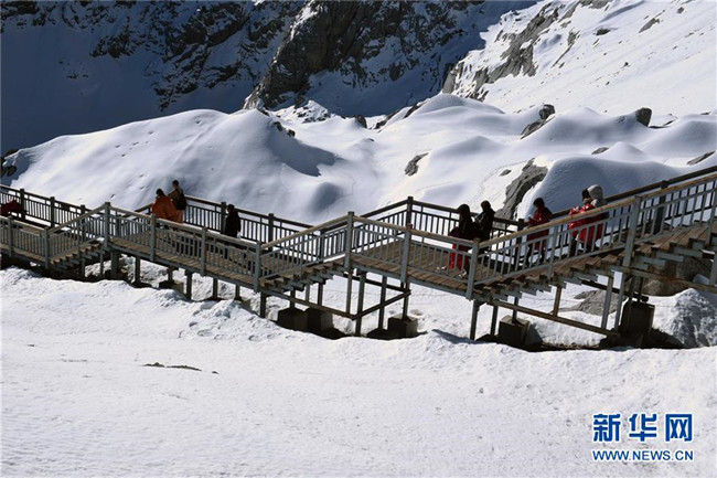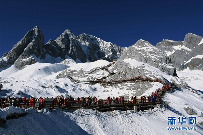 12月10日,人們在玉龍雪山游覽觀光。新華社記者楊宗友攝