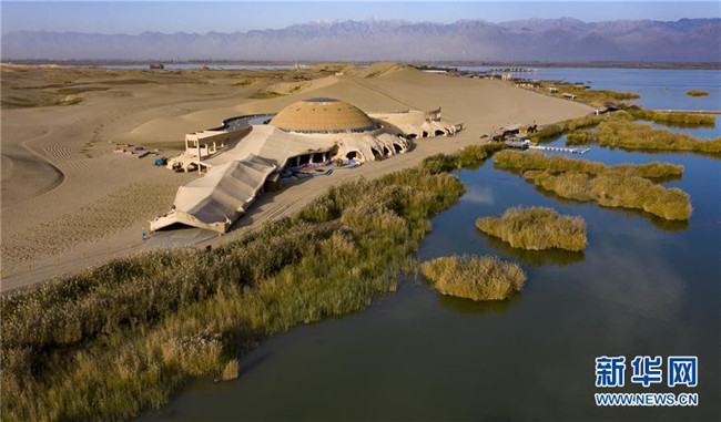 位于寧夏石嘴山市平羅縣境內的沙湖景區(qū),依沙傍水呈現(xiàn)出獨特的魅力(10月30日無人機拍攝)。 新華社記者 馮開華 攝