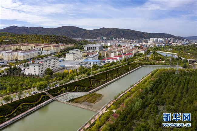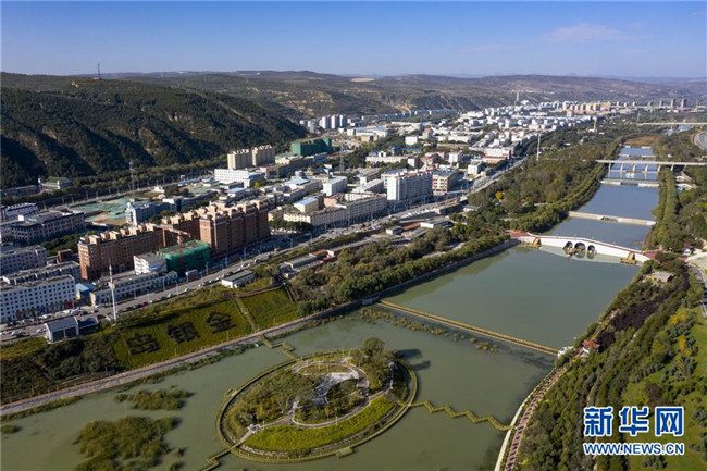 寧夏固原市隆德縣境內的渝河兩岸健身步道、綠化景觀等設施完善,成為居民休閑娛樂的好去處(10月11日無人機拍攝)。 新華社記者 馮開華 攝
