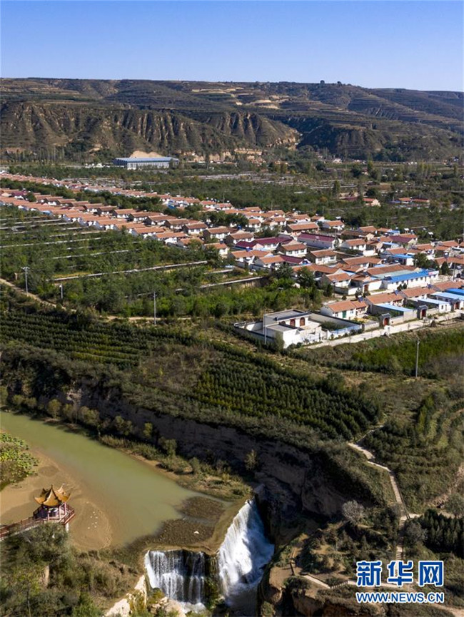 流經寧夏固原市彭陽縣城陽鄉(xiāng)的茹河,因地殼變化和河床運動形成旱塬上的瀑布,當?shù)匾源税l(fā)展鄉(xiāng)村旅游(10月12日無人機拍攝)。 新華社記者 馮開華 攝