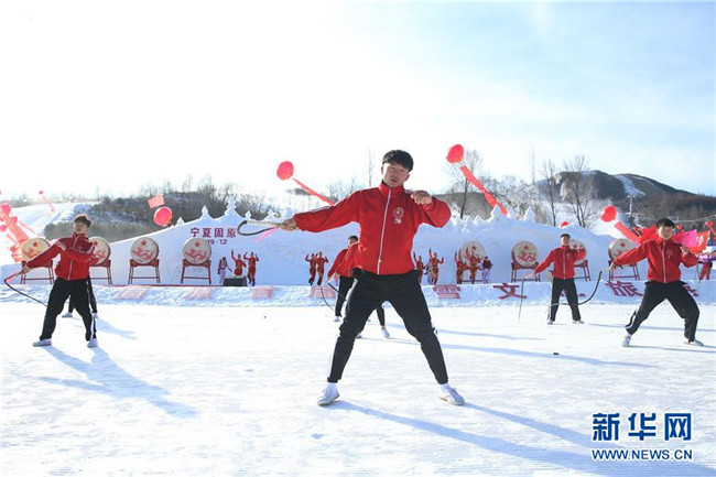 12月26日,表演者在啟動(dòng)儀式上表演。當(dāng)日,寧夏固原首屆冰雪文化旅游節(jié)在涇源縣婭豪國際滑雪場(chǎng)開幕。本屆冰雪文化旅游節(jié)以“相約六盤山·歡樂冬季游”為主題,將冰雪資源、文化旅游和體育賽事相結(jié)合,吸引游客參觀游玩。新華社記者賈浩成攝