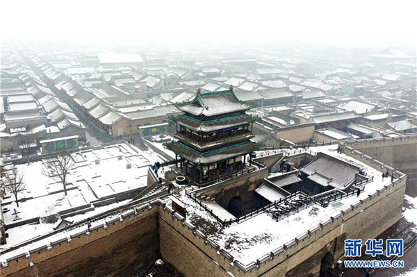 當(dāng)日,山西省平遙縣迎來(lái)降雪,雪中的平遙古城銀裝素裹,美景如畫。平遙古城是目前中國(guó)保存最完整的古代縣級(jí)城池之一,1997年被列入世界文化遺產(chǎn)名錄。新華社記者詹彥攝