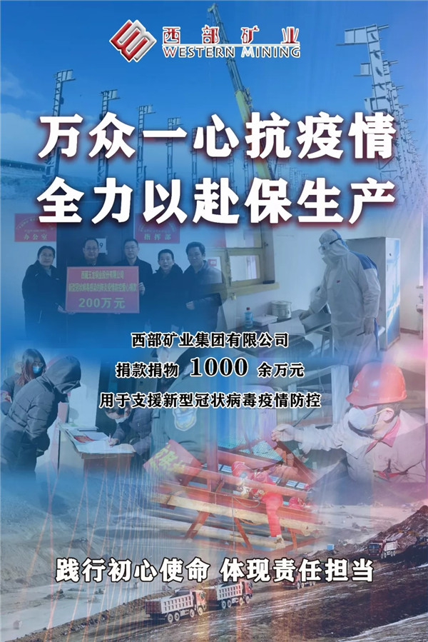 截至目前,西礦集團及所屬西礦股份、玉龍銅業(yè)、西部銅業(yè)捐款950萬元和價值20余萬元的物資,員工自發(fā)捐款91萬余元,其中省內19家公司員工捐款63萬余元,省外11家公司員工捐款28萬余元,所有捐款捐物將全部用于疫情防控工作并及時進行公示,西礦集團累計捐款捐物達1060余萬元。當前正處在抗擊疫情的關鍵時期,西礦集團上下一盤棋、一條心、一股勁,凝聚防控合力,堅決做到疫情防控和生產經營兩手抓、兩促進,助力打贏疫情防控阻擊戰(zhàn)。