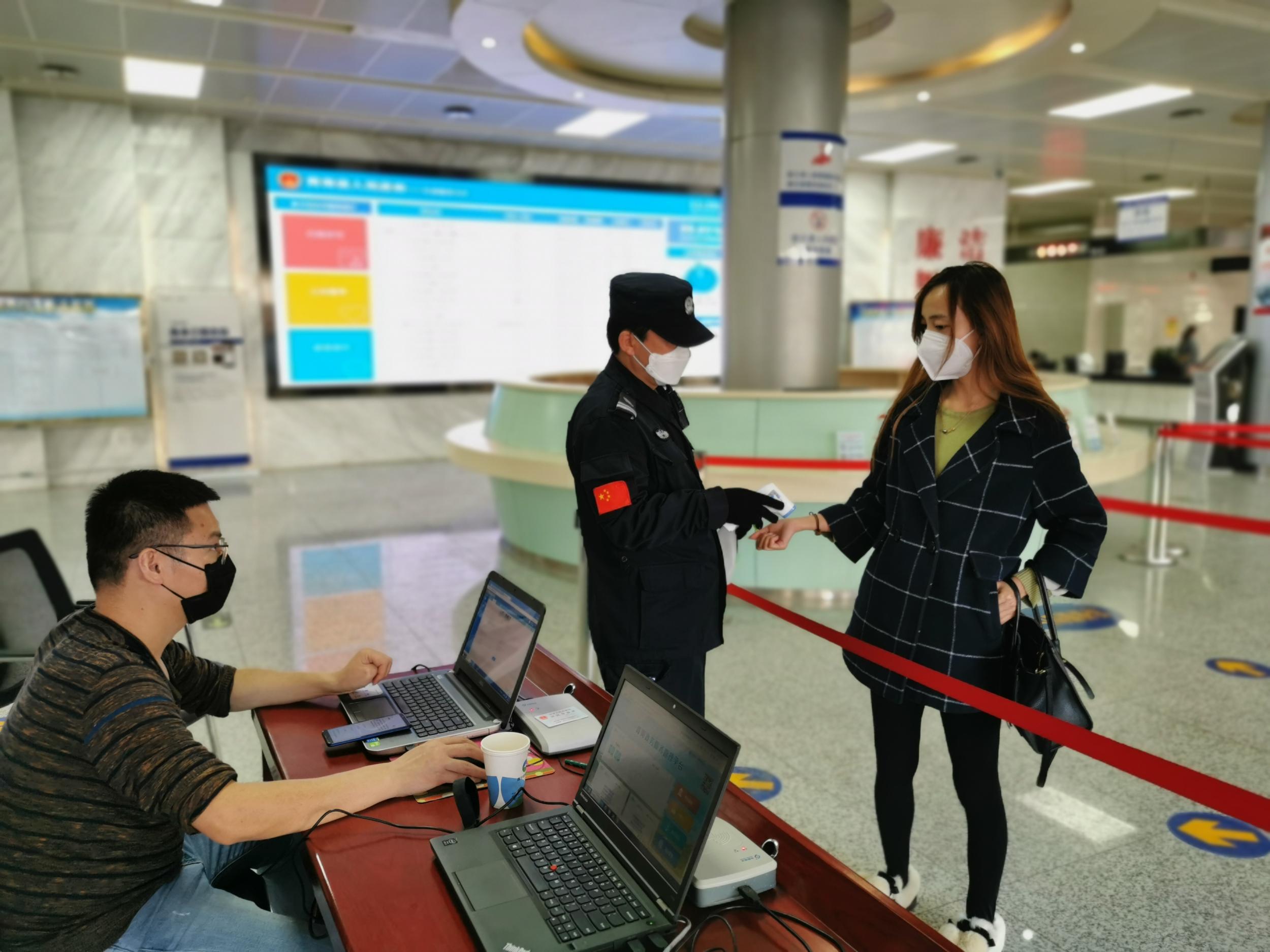 答:如確需要到省政府政務(wù)服務(wù)大廳辦理事項(xiàng),請(qǐng)您做好自我防護(hù),佩戴口罩進(jìn)入政務(wù)服務(wù)大廳,運(yùn)用“疫情防控智能化人員管控系統(tǒng)”,通過掃描二維碼或者讀取身份證信息,做好個(gè)人基本信息登記工作,經(jīng)過測(cè)量體溫和清潔消毒后快速進(jìn)入大廳。在外省休假返寧和省外進(jìn)青人員,應(yīng)向社區(qū)報(bào)告后嚴(yán)格落實(shí)居家隔離相關(guān)措施,居家隔離期滿后請(qǐng)攜帶由所在社區(qū)和疾控中心出具的《解除居家隔離或醫(yī)學(xué)觀察通知書》,經(jīng)過政務(wù)服務(wù)大廳疫情防控和安全保衛(wèi)組工作人員確認(rèn)后方可進(jìn)入大廳辦理事項(xiàng)。(陳郁)