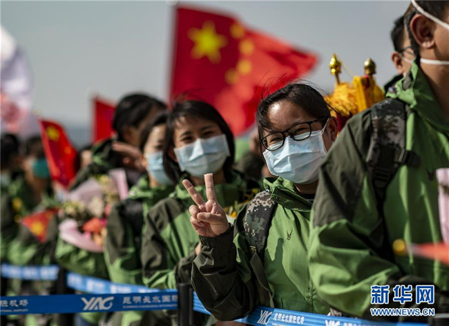 當(dāng)日,云南省援鄂醫(yī)療隊(duì)700余名醫(yī)護(hù)人員乘坐包機(jī)抵達(dá)昆明長(zhǎng)水機(jī)場(chǎng)。至此,除按照國(guó)家衛(wèi)健委統(tǒng)一安排繼續(xù)堅(jiān)守湖北的23名疾控防疫人員外,云南省援鄂醫(yī)療隊(duì)全員平安返回。
