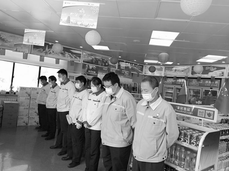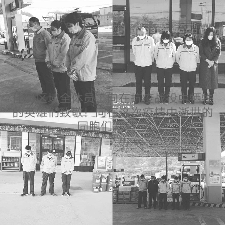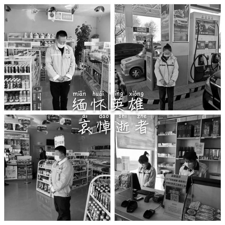 4月4日10時,分公司機(jī)關(guān)、各區(qū)域和加油站有懸掛國旗的全部下半旗志哀,員工默哀3分鐘,在確保安全和正常經(jīng)營秩序的前提下,部分加油站組織進(jìn)站車輛鳴笛志哀。