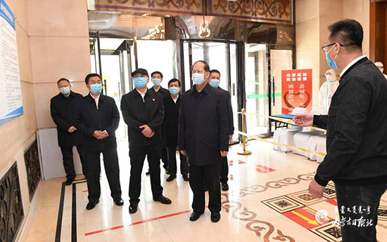 4月13日,自治區(qū)黨委書(shū)記、人大常委會(huì)主任石泰峰來(lái)到呼倫貝爾市滿洲里,調(diào)研入境人員隔離點(diǎn)防控工作情況。 內(nèi)蒙古日?qǐng)?bào)社融媒體記者 袁永紅 攝