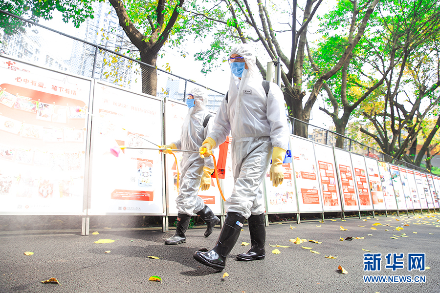 重慶市第十一中學,正式復學復課后,學校將每天早晚各一次定時開展消毒工作——室外場地采用噴灑消毒液方式進行徹底消毒,學生寢室設施及體育器材將采取擦拭消毒液、晾曬,紫外線消毒等方式進行消毒。新華網(wǎng) 彭博攝