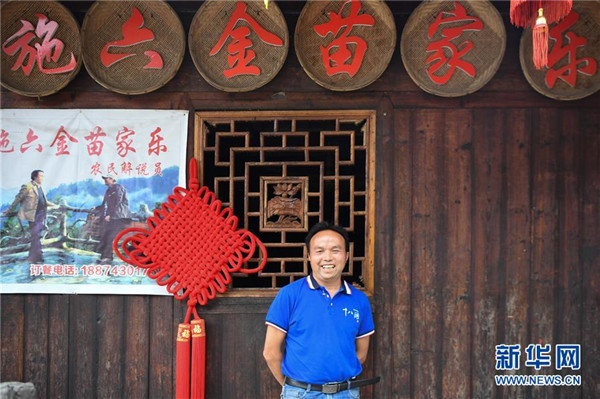 這是施六金在他的農(nóng)家樂前留影(4月25日攝)。1973年出生于十八洞村的施六金,由于父親患病很早就放棄學(xué)業(yè)和母親扛起了家庭的重?fù)?dān)。為了生活,他還曾遠(yuǎn)去東南亞打工。2015年,看到家鄉(xiāng)的變化,施六金回到村里開起了農(nóng)家樂,年度家庭人均純收入也從2014年的1715元增長(zhǎng)到了2019年的35696元。2018年,施六金與心愛的人組建了家庭。今年初,施六金與愛人迎來了一個(gè)大胖小子。“做人做事要懂得回報(bào)和感恩。”施六金給剛出生的兒子取名施澤恩。新華社記者薛宇舸攝