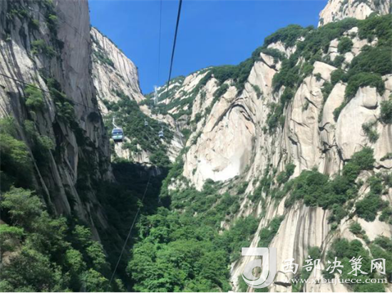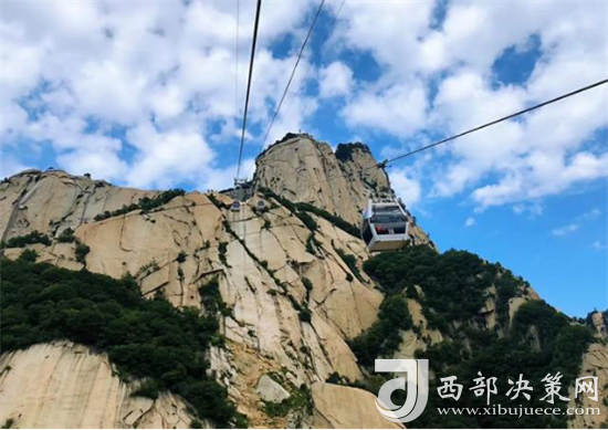 華山西線索道是迄今為止世界上第一條采取崖壁開鑿硐室站房、起伏式走向、設(shè)中間站的單線循環(huán)脫掛式索道,索道設(shè)備自法國引進(jìn),采取全程數(shù)字自動化控制系統(tǒng),達(dá)世界一流水平。索道下站設(shè)在甕峪內(nèi)東溝口,中間站設(shè)在仙峪白雀寺,上站設(shè)在華山西峰巨靈足南側(cè)下絕壁洞室內(nèi)。索道線路斜長4211米,相對高差894米,支架28個,客運(yùn)吊廂84個,吊廂間距為115米,每廂可乘8人,運(yùn)行速度最快6米/秒,單向運(yùn)量1500人/小時。