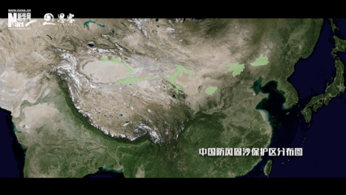 ▲中國(guó)防風(fēng)固沙保護(hù)區(qū)分布圖