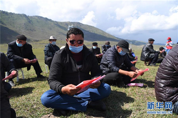 6月20日,在布爾津縣阿貢蓋提草原,牧民在看布爾津縣也格孜托別鄉(xiāng)克孜勒托蓋村家庭醫(yī)生簽約團隊發(fā)放的宣傳材料。圍繞實現(xiàn)人人享有基本醫(yī)療衛(wèi)生服務(wù)目標(biāo),2016年起,新疆布爾津縣開展家庭醫(yī)生簽約服務(wù)工作。該縣組建家庭醫(yī)生簽約團隊65個,團隊醫(yī)務(wù)人員233名,通過手機APP、基本公衛(wèi)系統(tǒng)與全縣建檔立卡貧困戶進(jìn)行電子化簽約,提升村醫(yī)隨訪的工作效率和質(zhì)量。截至目前,已完成簽約42936人,履約40043人。新華社記者沙達(dá)提攝