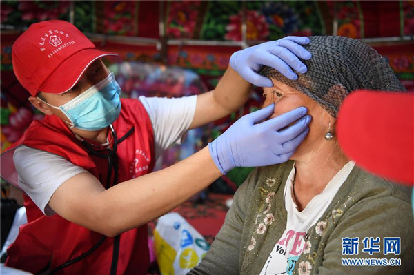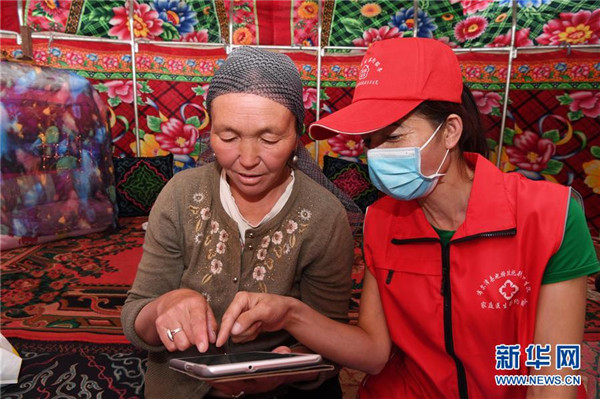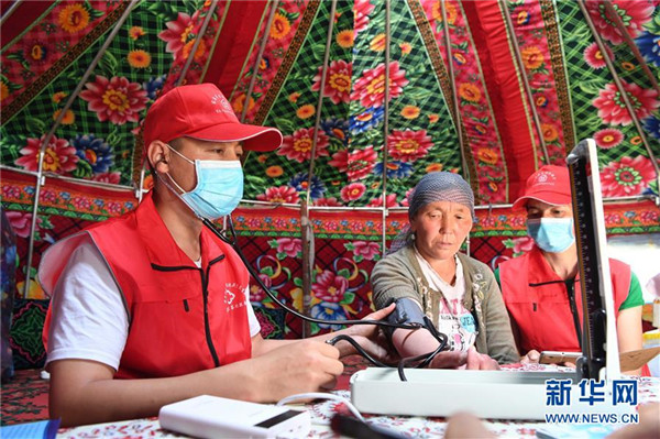 6月20日,新疆阿勒泰地區(qū)布爾津縣也格孜托別鄉(xiāng)克孜勒托蓋村村醫(yī)來到布爾津縣黑流灘草原給牧民巴合提古麗·塔拉甫汗檢查身體。圍繞實現(xiàn)人人享有基本醫(yī)療衛(wèi)生服務(wù)目標(biāo),2016年起,新疆布爾津縣開展家庭醫(yī)生簽約服務(wù)工作。該縣組建家庭醫(yī)生簽約團隊65個,團隊醫(yī)務(wù)人員233名,通過手機APP、基本公衛(wèi)系統(tǒng)與全縣建檔立卡貧困戶進(jìn)行電子化簽約,提升村醫(yī)隨訪的工作效率和質(zhì)量。截至目前,已完成簽約42936人,履約40043人。新華社記者沙達(dá)提攝