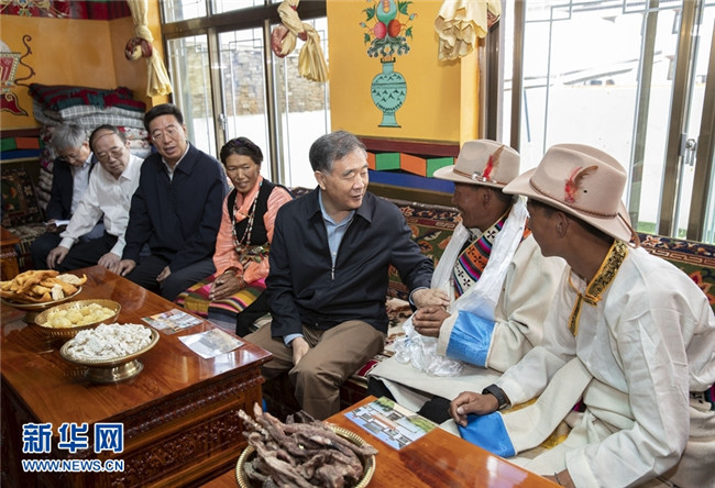 7月6日至8日,中共中央政治局常委、全國(guó)政協(xié)主席汪洋在西藏調(diào)研。這是7月6日,汪洋在日喀則桑珠孜區(qū)江當(dāng)鄉(xiāng)郭加新村易地扶貧搬遷集中安置點(diǎn)藏族搬遷群眾家中看望。 新華社記者 黃敬文 攝