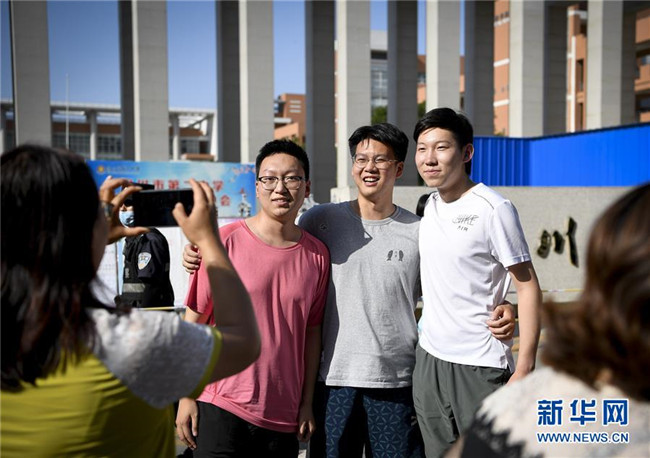 7月8日,在吉林省長春市第八中學(xué)考點(diǎn)門口,考生慶祝高考結(jié)束。 當(dāng)日,全國部分地區(qū)2020年高考結(jié)束。 新華社發(fā)(顏麟蘊(yùn)攝)