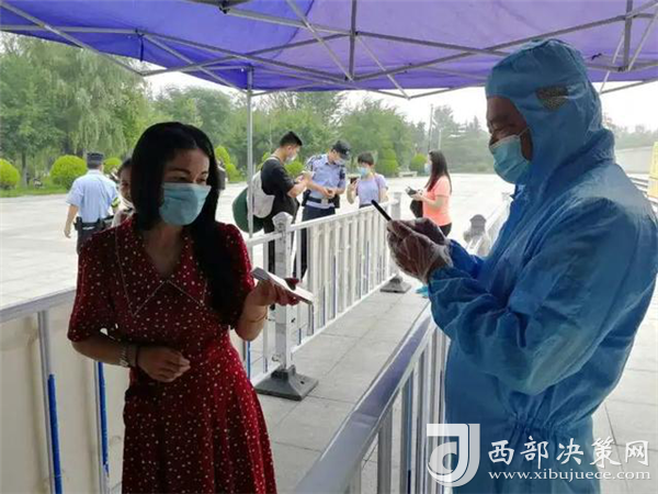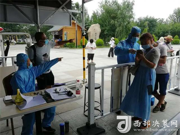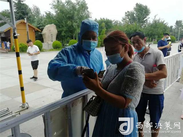 在游客入口處,工作人員正在逐一測量游客體溫、查驗健康碼,沒有健康碼的,他們要幫助游客注冊并認真登記。經(jīng)檢驗,一切正常的,恭請入園;體溫不正常的,進一步篩查甄別;健康碼是黃色的,勸返;健康碼是紅色的,隔離。