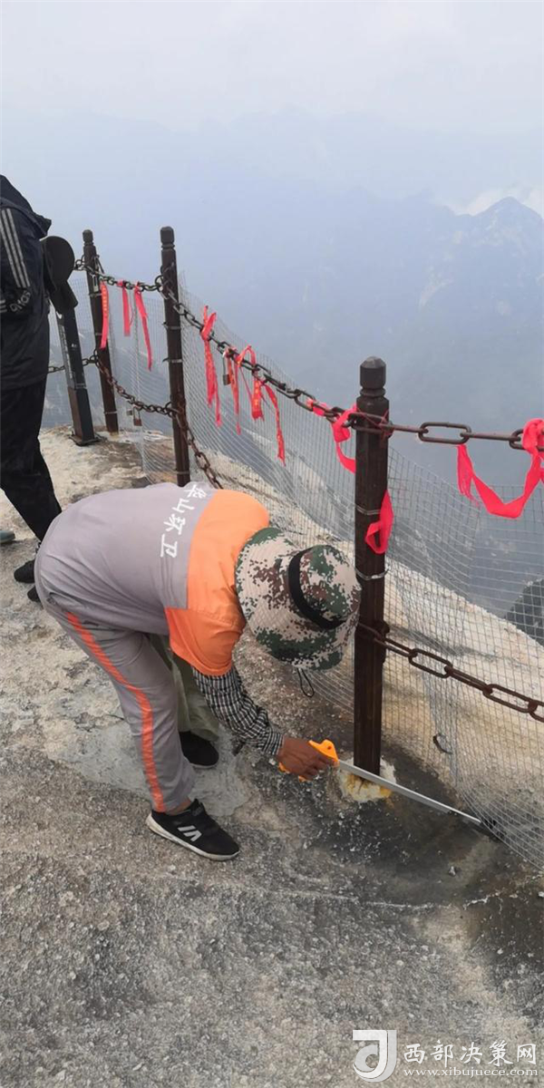 楊群社是景區(qū)一名環(huán)衛(wèi)工,負責華山西峰頂區(qū)域的衛(wèi)生保潔工作。為了給游客創(chuàng)造一個干凈整潔的游覽環(huán)境,熾熱的陽光下,楊群社在自己的區(qū)域內(nèi)不停地來回撿拾垃圾。