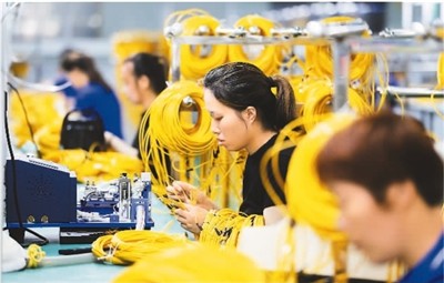 今年以來,安徽省淮北市加快培育戰(zhàn)新產(chǎn)業(yè)鏈,提升戰(zhàn)新產(chǎn)業(yè)整體競(jìng)爭(zhēng)力,使戰(zhàn)新產(chǎn)業(yè)成為經(jīng)濟(jì)增長(zhǎng)新引擎。圖為淮北市濉溪經(jīng)濟(jì)開發(fā)區(qū)內(nèi)的一家光通信技術(shù)企業(yè)的工人在生產(chǎn)車間加工光通信產(chǎn)品。萬善朝攝(人民視覺)