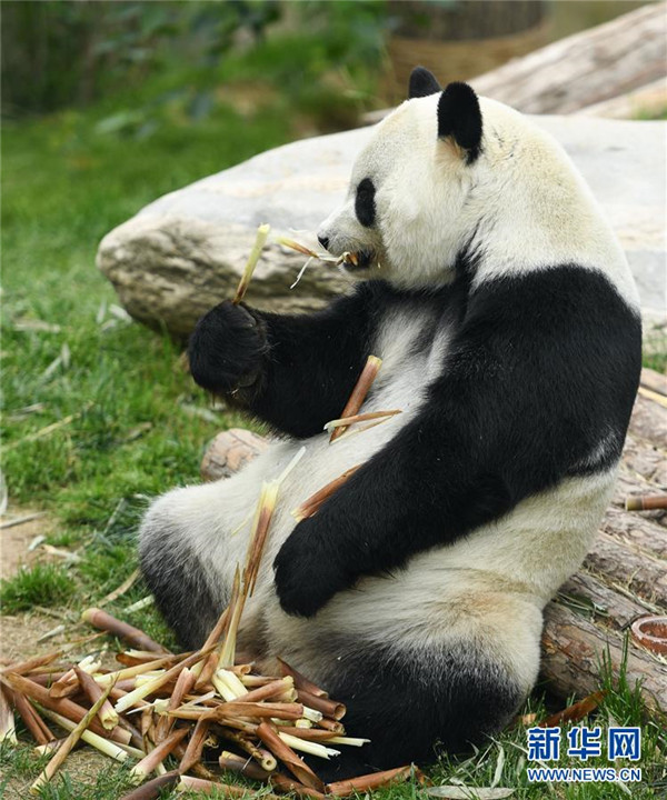 8月16日,大熊貓“雙欣”在西寧熊貓館內(nèi)吃竹子。青海省西寧熊貓館的四只大熊貓已經(jīng)在西寧生活了一年多,在工作人員的悉心照顧下,已經(jīng)適應(yīng)了青藏高原的氣候,身體各項(xiàng)指標(biāo)正常。新華社記者耿輝凰攝