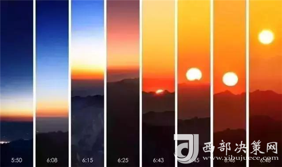 是時(shí),但見夜幕自東方悄然隱退,晨曦初露,漸漸霞光瑰麗,云海奔涌。