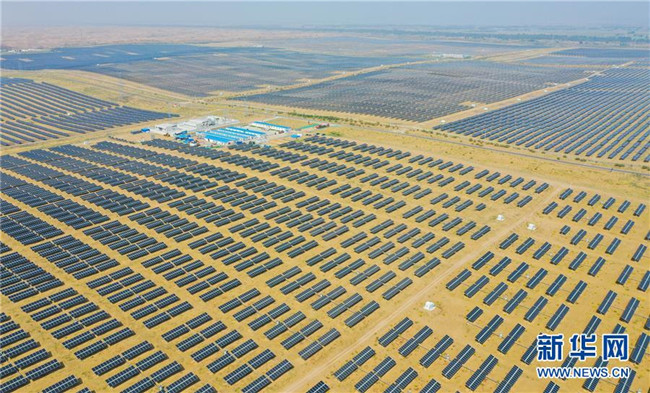 日前,由中建中環(huán)工程有限公司承建的內蒙古達拉特旗光伏發(fā)電領跑獎勵基地1號項目順利建成完工,該項目位于庫布其沙漠中,建成后與基地內一期光伏電站連成一體,占地面積約120萬平方米。 新華社記者 連振 攝