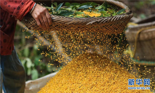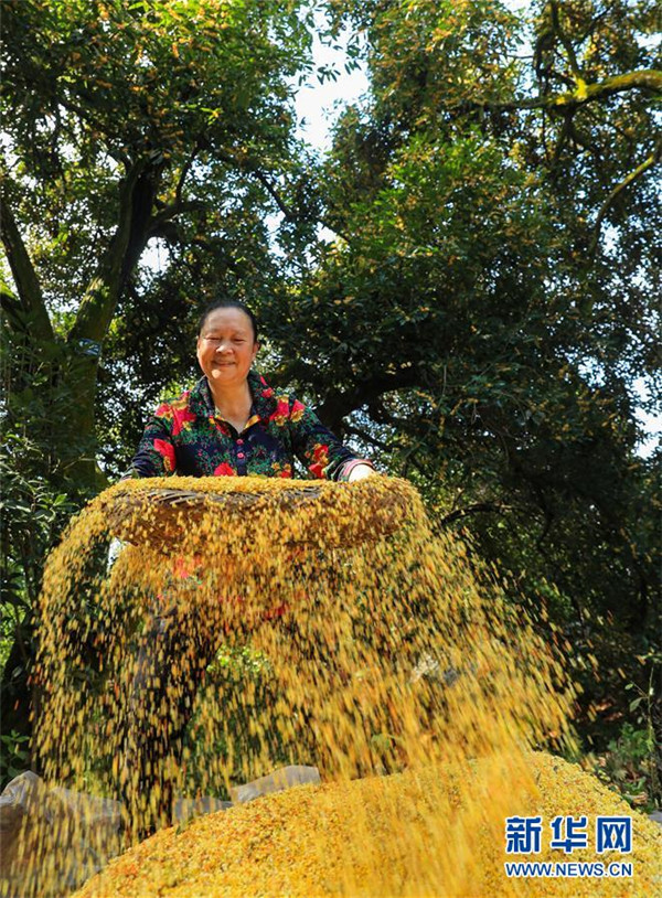 9月24日,四川省瀘州市江陽區(qū)鄰玉街道天堂村的村民在打收桂花。金秋時(shí)節(jié),四川省瀘州市江陽區(qū)鄰玉街道天堂村的村民們忙著打收桂花,制作桂花糕等美食,迎接中秋佳節(jié)的到來。新華社發(fā)(劉學(xué)懿攝)