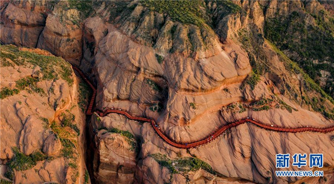 陜西省靖邊縣龍洲鎮(zhèn)波浪谷丹霞景區(qū)地處陜北黃土高原,地質(zhì)資源豐富多樣,線谷、巷谷、絕壁等構(gòu)成了特有的波浪形砂巖地貌,形成了罕見的獨(dú)特景觀,是一處集攝影、寫生、探險(xiǎn)、研學(xué)、旅游于一體的好去處。