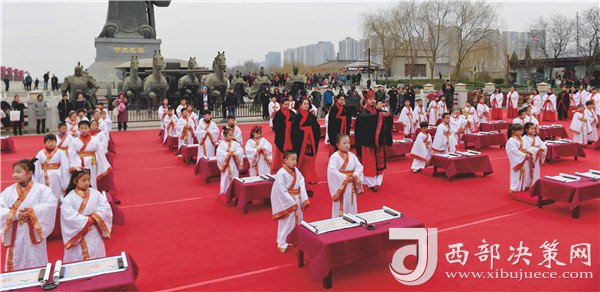 西安百余名學童在西安漢城湖舉行漢服開筆禮
