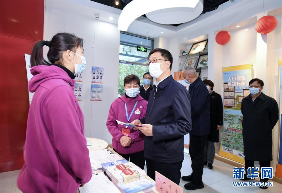 11月3日,中共中央政治局常委、國(guó)務(wù)院副總理、國(guó)務(wù)院第七次全國(guó)人口普查領(lǐng)導(dǎo)小組組長(zhǎng)韓正在北京調(diào)研人口普查登記工作。這是韓正在西城區(qū)金融街街道豐融園社區(qū)居委會(huì)調(diào)研。 新華社記者 張領(lǐng) 攝