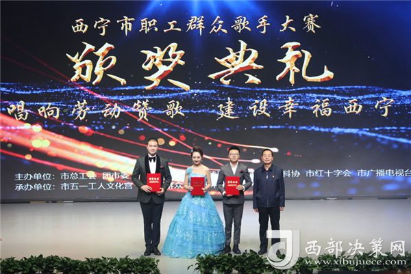 西部決策網(wǎng)訊 11月13日下午,“中國(guó)夢(mèng)•勞動(dòng)美——唱響勞動(dòng)贊歌•建設(shè)幸福西寧”西寧市職工群眾歌手大賽正式落下帷幕,本次比賽由市總工會(huì)、團(tuán)市委、市婦聯(lián)、市文聯(lián)、市殘聯(lián)、市工商聯(lián)、市科協(xié)、市紅十字會(huì)、市廣播電視臺(tái)聯(lián)合主辦,市五一工人文化宮、市職工群眾業(yè)余藝術(shù)團(tuán)承辦,來(lái)自全市各行各業(yè)職工群眾代表300余人參加了頒獎(jiǎng)典禮。同時(shí)頒獎(jiǎng)典禮現(xiàn)場(chǎng)采取直播的方式,獲得13.5萬(wàn)次點(diǎn)擊、4.1萬(wàn)個(gè)點(diǎn)贊。