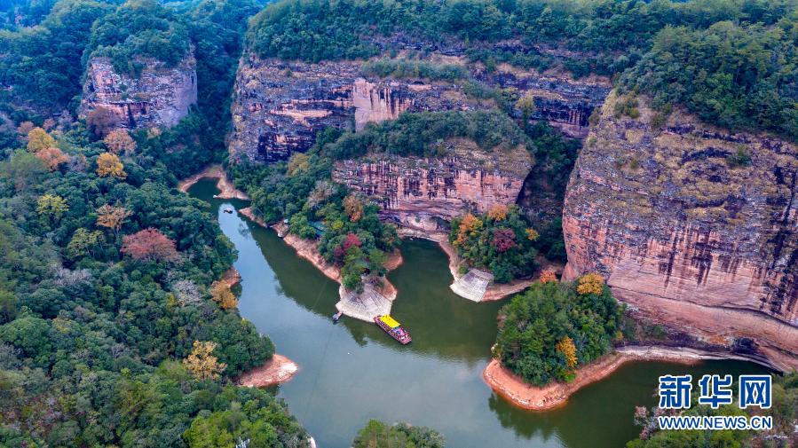 這是12月9日拍攝的福建省三明市泰寧縣大金湖景區(qū)的水上丹霞景觀(無(wú)人機(jī)照片)。新華社記者 姜克紅 攝