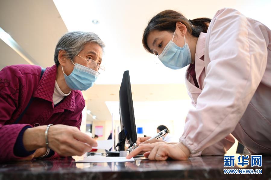 福建省三明市第一醫(yī)院的醫(yī)保辦工作人員(右)向前來(lái)咨詢(xún)藥品報(bào)銷(xiāo)問(wèn)題的居民講解相關(guān)政策(11月18日攝)。新華社記者 姜克紅 攝
