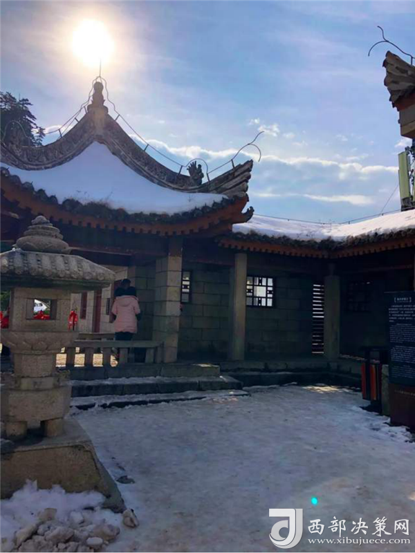金天宮,建造得金碧輝煌,從遠(yuǎn)處看白雪覆蓋下的道觀很惹眼……