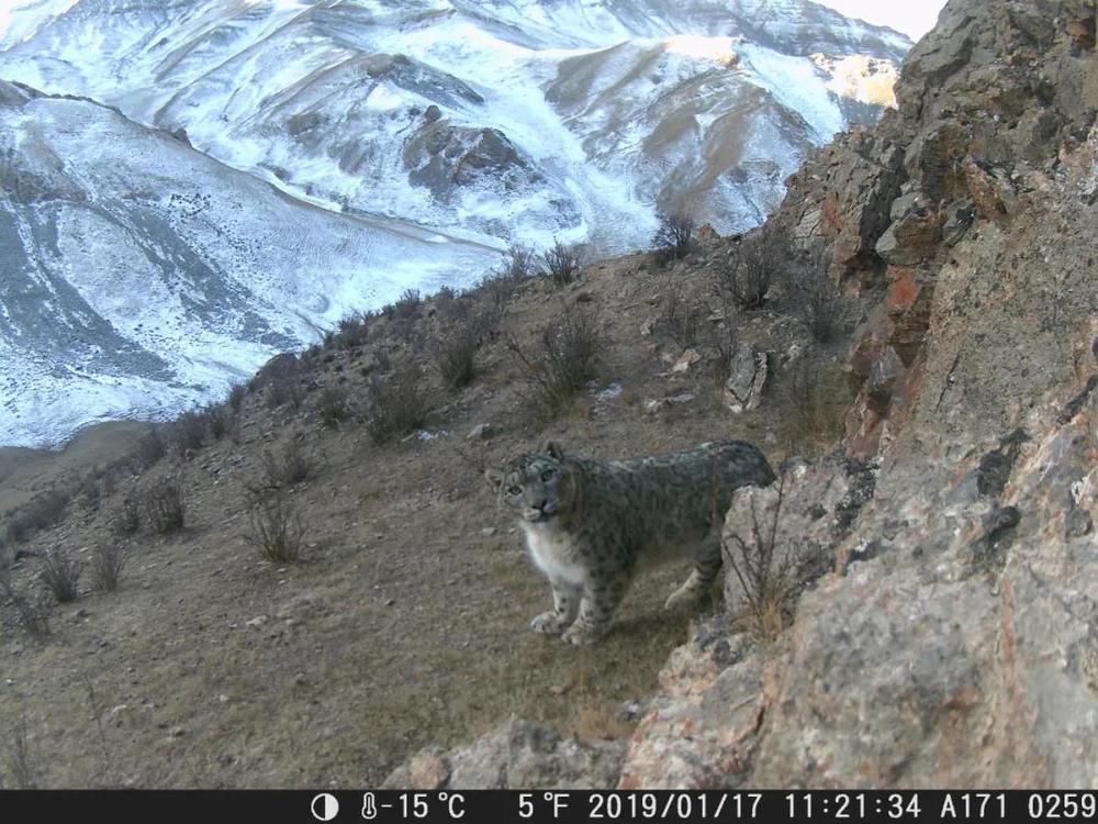 ↑2019年1月17日,在祁連山國家公園青海片區(qū),紅外相機拍攝到的雪豹照片。