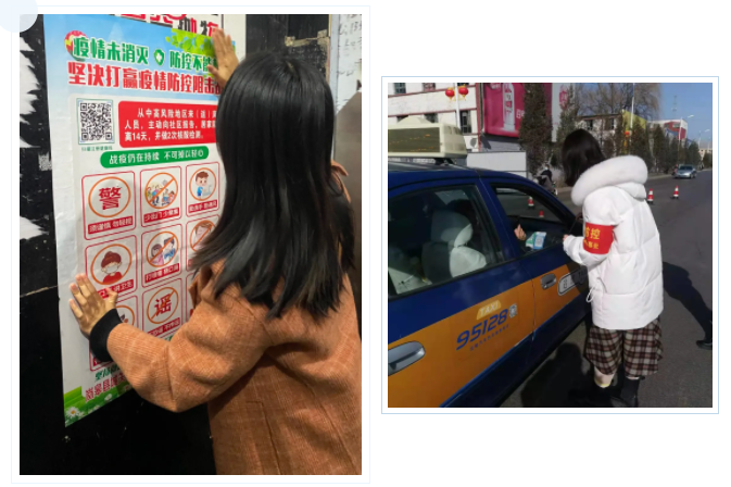 協(xié)助社區(qū)工作人員開展返鄉(xiāng)人員信息登記、查看健康碼、測量體溫,為進出人員分發(fā)口罩、排查登記;深入醫(yī)院等公共場所,耐心宣講防疫知識,引導(dǎo)居民做好自我防護;將防疫小知識制作成手冊,融入文字、圖片等多種元素,發(fā)放給當?shù)鼐用?,廣泛宣傳防疫知識……同學(xué)們的身影忙碌于15個省份44個地市。