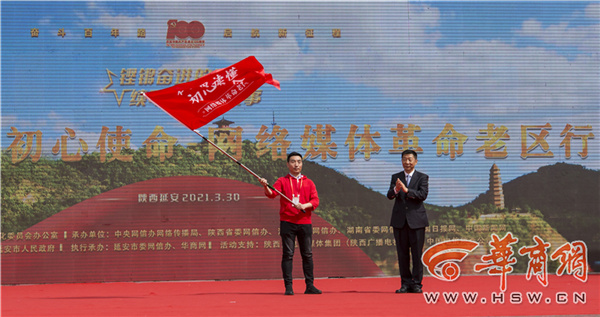 主會場活動(dòng)結(jié)束后,陜西分會場“在這里讀懂初心使命——網(wǎng)絡(luò)媒體革命老區(qū)行”網(wǎng)絡(luò)主題采訪活動(dòng)在延安寶塔山游客廣場正式啟動(dòng)。趙剛在分會場啟動(dòng)儀式上講話并向采訪團(tuán)授旗。陜西省委網(wǎng)信辦主任鮑永能主持啟動(dòng)儀式。中央網(wǎng)信辦網(wǎng)絡(luò)傳播局副局長邵波濤,陜西省委網(wǎng)信辦副主任王利參加啟動(dòng)儀式。延安市委副書記、政法委書記嚴(yán)漢平在啟動(dòng)儀式上致辭。媒體團(tuán)代表中國新聞網(wǎng)負(fù)責(zé)人吳慶才作表態(tài)發(fā)言。