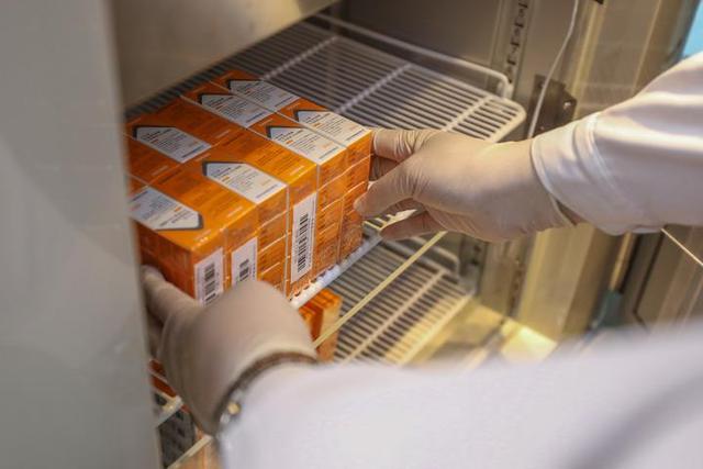 醫(yī)護(hù)人員從移動(dòng)疫苗接種車上的冷藏箱內(nèi)取出新冠疫苗。新華社記者張玉薇 攝